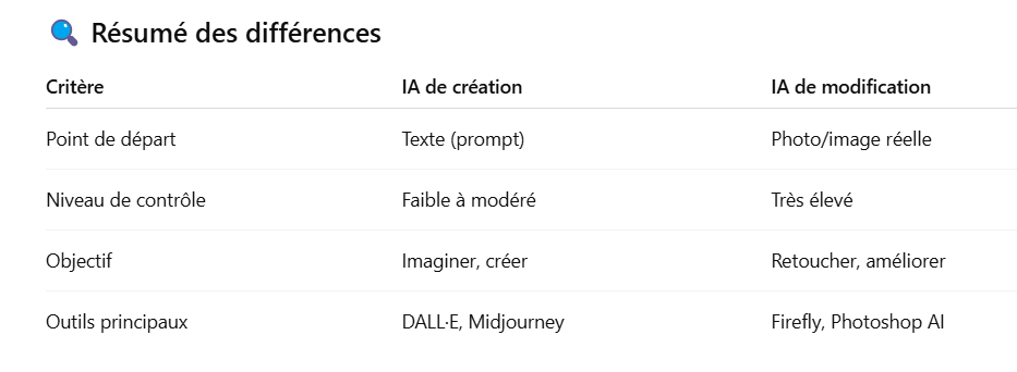 🧭 2. Deux types d’IA visuelles : Création vs. Modification